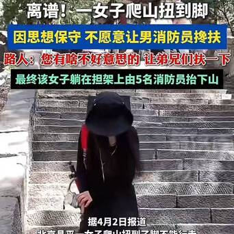 【“小仙女真是逆天啊!”女游客崴脚拒消防员搀扶,5壮汉抬担架累瘫】女游客爬山扭了脚,于是打了救援电话。但消防员来了后,这位小仙女却以自己“思想保守”、“男女授受不亲”为由死活不让碰!最后逼得5个消防员没办法,只能用担架抬她下山,累得气喘吁吁!